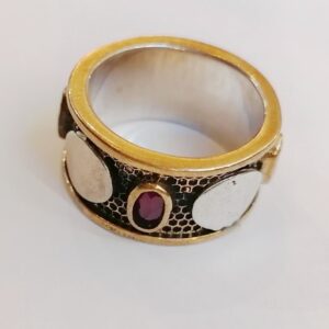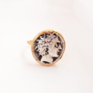 pierścionek z brązu pozłacany z repliką monety starożytnej