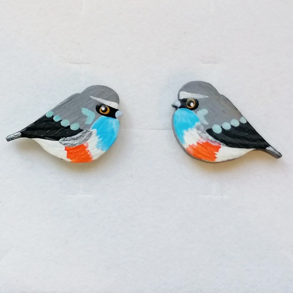 podróżniczki- kolczyki drewniane na sztyftach ze stali nierdzewnej, ręcznie malowane.